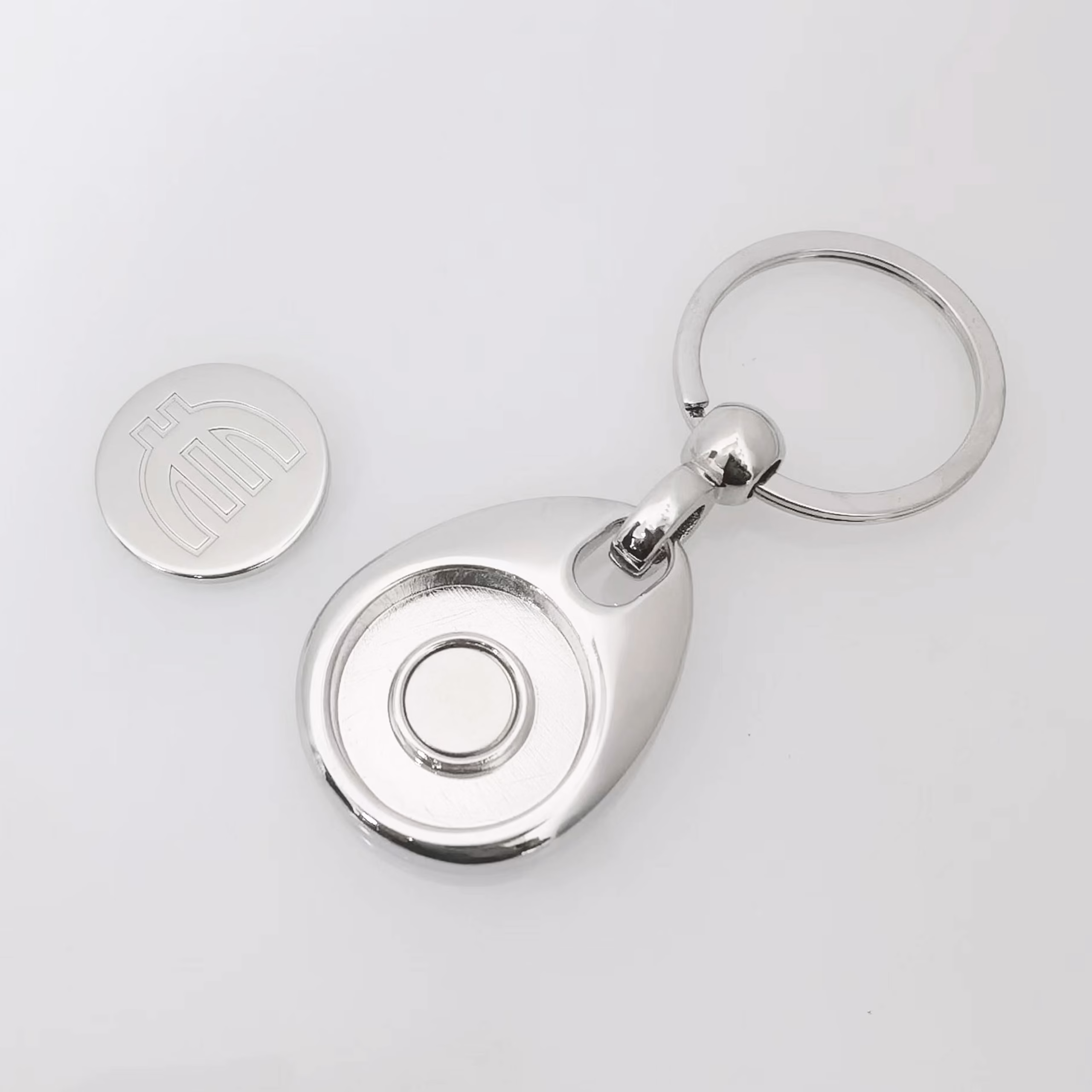 Breloc metalic cu monedă emailată – chip cărucior personalizat