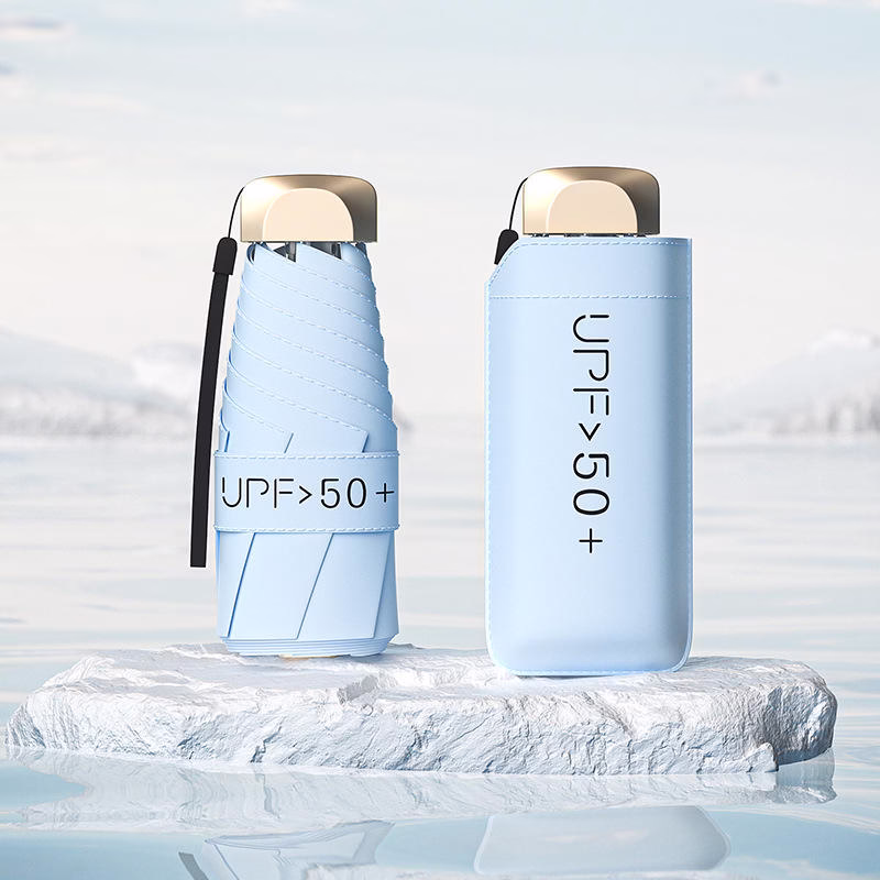 Umbrelă mini de buzunar, personalizabilă cu logo – rezistentă la vânt, protecție UV, ideală pentru călătorii și campanii promoționale